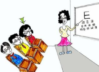 县城中学的潘老师说,现在,学生近视的现象已经非常普遍,甚至连幼儿园的孩子都有戴眼镜的,戴眼镜不再是界别孩子读书是否用功的标志。尤其是那些“预备役”的中考生和高考生们,尽管教师和家长一再提醒告诫,保护眼睛也成了“说起来重要,学起来次要,为了考试不要”的空洞口号。
