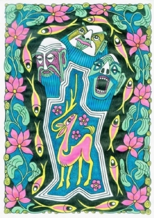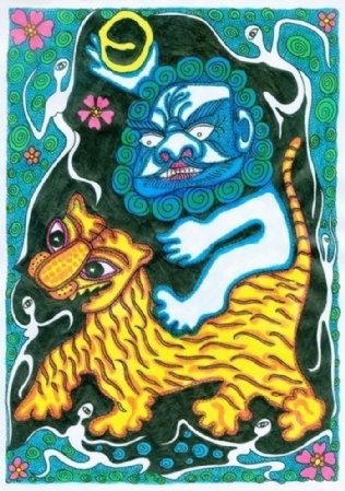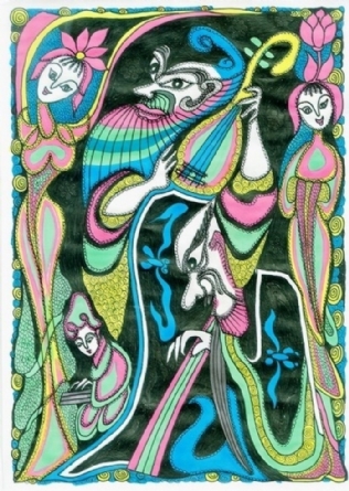 这组“老年童画”彩图,是老杨集童心与老年智慧于一体,烩灵感与匠心一身,融合我县砖雕、木雕、石雕等民俗文化元素创作的一组作品,是杨老以玩童天真幼稚的心态,与老年人“老谋深算”结合的一种思维和画面表达。