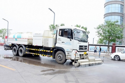 交流过程中,小店区环卫中心机扫队出动两台高压水车、两台机扫车对美锦大街、307国道等道路进行高压冲洗及清扫,并喷洒抑尘剂,全方位遏制道路扬尘。