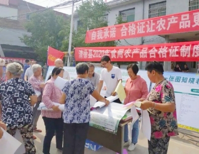 该局统一印制了《清徐县食用农产品合格证制度试行告知书》1000余份,《图说食用农产品合格证》500余份,《中华人民共和国农产品质量安全法》300余本,《国家禁限农药名录》《农产品质量安全知识宣传资料》《农业部公告禁用兽药目录汇总》各500余份,条幅10余条,并在蔬菜、水果、畜牧种养殖生产基地、村委会、农村主要路口等明显位置张贴、悬挂,为全面推行合格证制度营造了良好社会氛围。
