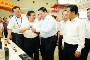 金道铭等省市领导专门来到中国太原(清徐)国际醋文化节暨“北交会”清徐特装展区,在水塔公司展台前,金道铭一行驻足观看,详细了解不同品种醋的制作原料、工艺流程、产品特点等,他饶有兴致地品尝“水塔”保健醋后,连声称“好”!面对琳琅满目的各式各类醋品,他说,要继续加强对外交流,把我们的醋品牌“打”出去。