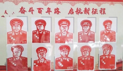 镂空的剪纸似在述说着千年的过往。三国的争、水浒的义、红楼的情、西游的趣,在或剪或刻中,在线与面的结合中,无数粗狂与柔情跃然纸上,无数智慧与侠义完美呈现。金戈铁马,峥嵘岁月,十大元帅从硝烟弥漫的战场走来,从不朽的历史舞台冉冉升起。孩子们把生命至上、举国同心、舍生忘死、尊重科学、命运与共的伟大抗疫精神,把对人民的爱,对祖国的情,融入到剪纸中。更加深刻地感悟到只有众志成城,才能共克时艰,只有“国泰”,才能“民安”。