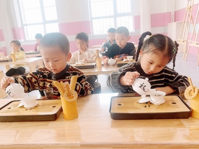 打开中华民族五千年的民族史,几乎每一页都可以嗅到茶香。茶艺作为茶文化的重要组成部分,把日常的饮茶引向艺术化,赋予茶更强的灵性和美感,使孩子们在高雅有趣的茶艺活动中,熏染静、雅、美的君子之风! 泡茶讲究让人慢下来。幼儿经过茶文化的熏陶后会逐渐养成遇事临危不乱,做事有条不紊,不随便置放物品,拥有洁净精微的好习惯和很好的定力、专注力。