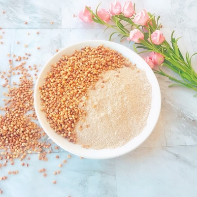 我解开口子,抓一小撮放在手心,细细看。这多么像婴儿粉嫩的肤色呀,那一地热烈的红,脱了几层皮,才可以变成这样的色泽。这细滑至极的末,用多细的箩筛过啊!一个穗子又能磨多少呢?他那个腿脚,怎么下水,收割这一个个穗子?