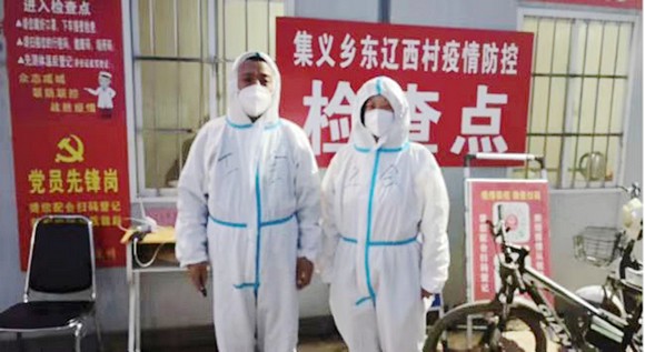 有一种使命叫全力以赴,有一种爱情叫并肩作战。在县总工会蹲点包联的集义乡东辽西村的“大白”队伍里,出现一对“夫妻”档——郝进亮、魏瑞云夫妇。郝进亮是工会党员,而魏瑞云不是党员干部,也不是县总工会的在编员工,他们都义无反顾地冲锋在抗疫一线。