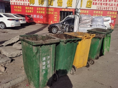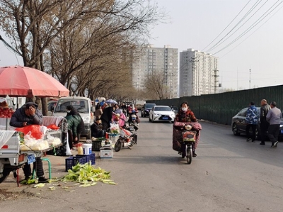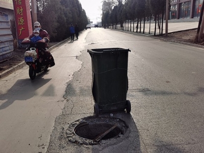 凤仪街与榆古路交叉口,垃圾桶油污破损。城北菜市场,占道经营。平泉村,路面大坑。