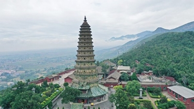 天下第一琉璃塔——飞虹塔。刚进入广胜寺景区,老远就看到山顶上宏伟精美的琉璃塔,巍然屹立,高耸入云。飞虹塔位于景区的上寺,是广胜寺最为突出的建筑。始建于明代正德、嘉靖年间(1515——1527年),历时12年建成。它矗立于上寺山门的正面,为楼阁式密宗塔,呈八角形共13层,通高47.31米,全部由砖砌而成。砖砌的塔身装饰着琉璃烧制的屋宇、神龛、角柱、斗拱、栏板、宝瓶、花罩、莲瓣、花卉、龙凤、金刚力士、童子、菩萨、仙人等多种构件,造型生动逼真,色彩鲜艳夺目,二三层尤为精致。仔细观察:龙凤鳞爪,跃跃欲飞;金刚力士盔甲鲜明,威风八面;佛陀菩萨衣袂飘逸,凝重肃穆;和尚憨态可掬,童子活波可爱,动感十足,呼之欲出。整座琉璃塔在阳光的照耀下更加壮丽,赤、橙、黄、绿、青、蓝、紫,胜似道道彩虹,闪闪发光,欲飞似动。因为这一奇妙的景色,人们称为“飞虹塔”。还有一种说法,就是募资营建飞虹宝塔的达连大师,他的法号为“飞虹”,后人为了纪念他建塔的功德,就把这座宝塔命名为“飞虹塔”。
