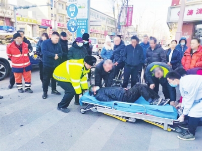 本报讯1月3日,清徐交警大队民警在巡逻至文源路与凤仪街交叉口时,发现一辆电动自行车倒在道路中央,电动自行车驾驶人躺在路面上,此时过往车辆较多,情况十分危急。