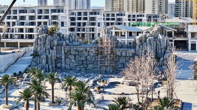 在清源水城的旧城墙遗址公园,有一个大型的叠水瀑布,可以说是水城的标志性景观。在叠水瀑布的西侧石壁上,镌刻着一首大部分清徐人耳熟能详的诗: