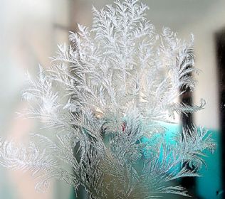 精美别致的冰窗花实在就是大自然赐给北方孩子们的最好的礼物。每个早晨都会有异样的惊喜在等着你,绝不雷同。即使你今天早晨看腻了,依然可以找到充满乐趣的玩法,把小手半圈起来,放在冰花上,不一会,就有一只小小的光脚丫落在你希望它在的地方,你可以让你的脚丫走遍你心中的任何地方。或用手指随心所欲地画来画去,直到冰窗花完全变成冰渣子才肯罢休。