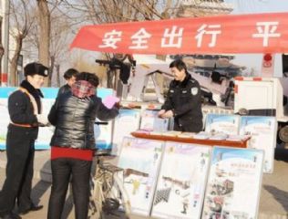 县交警大队民警在醋都广场举行春运安全宣传活动